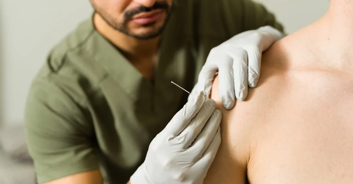 Dry needling is a therapeutic technique where your therapist inserts a thin, sterile needles into or near a muscle's trigger points to release tightness and pain.